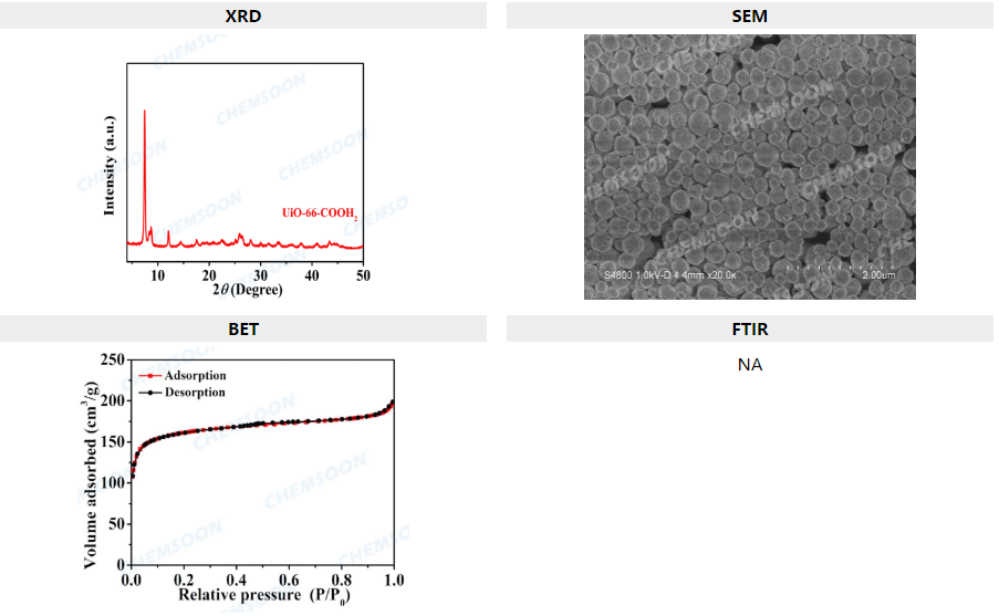 1) COOH-UIO-66 性質(zhì)穩(wěn)定,在水溶液和酸性條件下穩(wěn)定。