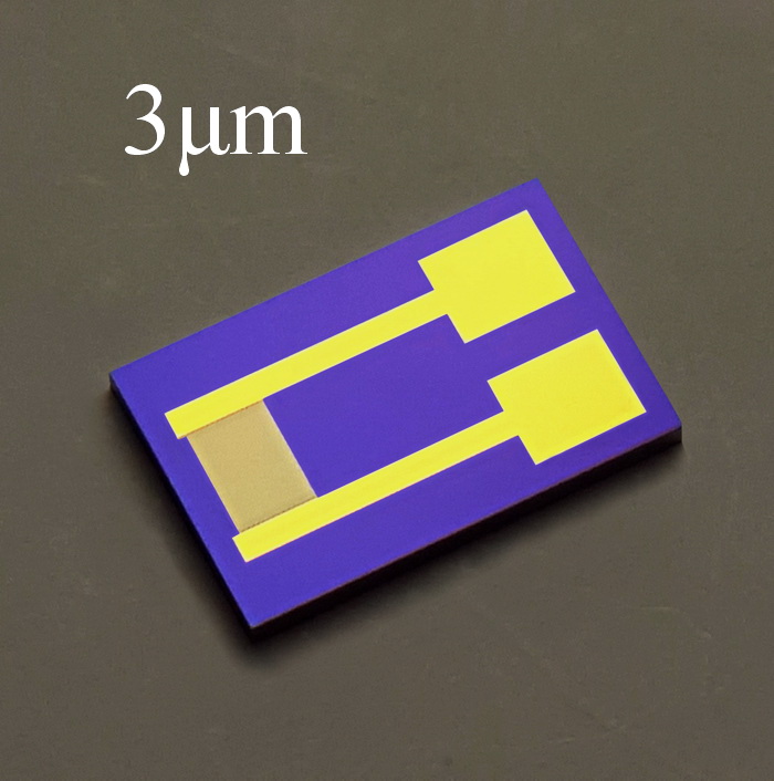 2.線寬:5 u m,線距:3 u m,指長(zhǎng):1.6mm,叉指對(duì)數(shù):75(150指).