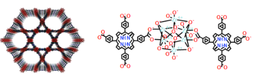 1) PCN-222具有穩定的一維孔道,可負載金屬催化劑或儲氣及吸附材料