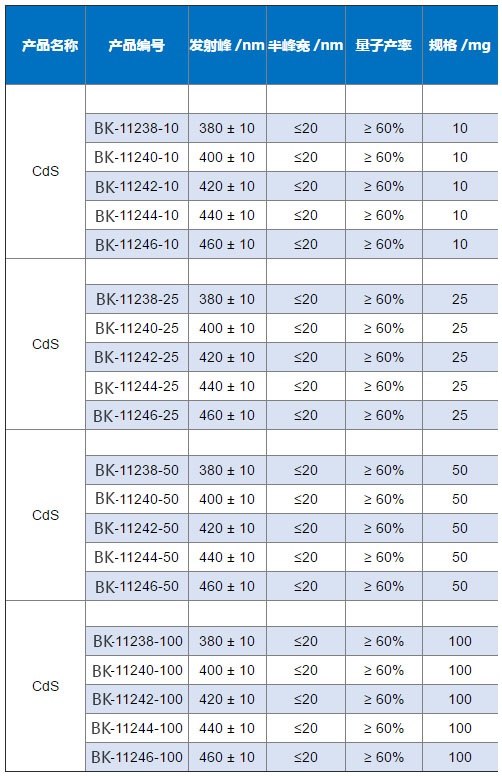 蘇州北科納米科技有限公司生產(chǎn)的油溶性CdS量子點,表面由疏水配體包裹熒光納米材料,平均的量子產(chǎn)率為60%以上,儲存時應(yīng)避免陽光直射,4度密封暗處保存,可以為客戶訂制生產(chǎn)360nm~460nm任一波長不同克數(shù)的產(chǎn)品。本產(chǎn)品具有粒徑均一,吸收光譜寬泛,發(fā)射光譜窄而對稱,熒光強(qiáng)度高而穩(wěn)定等特點,可應(yīng)用于太陽能電池、發(fā)光器件與生物熒光標(biāo)記等領(lǐng)域。