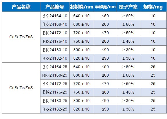 油溶性CdSeTe/ZnS 量子點 PL 640 nm--820 nm