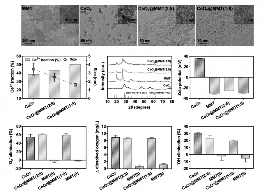產品性能:具備ROS有益清除活性、消化道高穩定性和結腸炎癥部位靶向能力的口服CeO2@MMT納米酶藥物