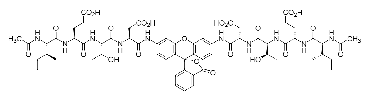 蘇州北科納米科技有限公司生產銷售“(Ac-IETD)2-R110”“分子量:1331.34,激發(nm):500,發射(nm):522,由于高度純化的若丹明110(R110)衍生的底物被鎖定為內酯構型,因此它們是無色且無熒光的。半胱天冬酶對R110肽的切割產生強熒光的R110,可以在510-530 nm處用488 nm的激發進行熒光檢測,這是熒光儀器中常用的激發光源。”,該產品僅用于科研,如果需要請聯系我們