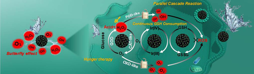【主要優(yōu)勢(shì)】1、葡萄糖酸可以通過(guò)釋放IrOx的氧化酶和過(guò)氧化物酶樣活性產(chǎn)生·O2−和·OH;2、IrOx還可以通過(guò)IrIV和IrIII的自環(huán)價(jià)交替持續(xù)消耗谷胱甘肽(GSH),打破腫瘤的抗氧化防御系統(tǒng);3、簡(jiǎn)單地將制備好的納米酶引入腫瘤系統(tǒng)可能會(huì)導(dǎo)致氧氣壓力和饑餓治療的“蝴蝶效應(yīng)”,可以通過(guò)對(duì)系統(tǒng)微環(huán)境確定性盒子邊界條件的極大擾動(dòng)來(lái)打破自適應(yīng)進(jìn)化,在不增強(qiáng)ROS清除酶和抗氧化分子的情況下破壞混亂的腫瘤,從而優(yōu)于傳統(tǒng)的ROS和gsh靶向治療。