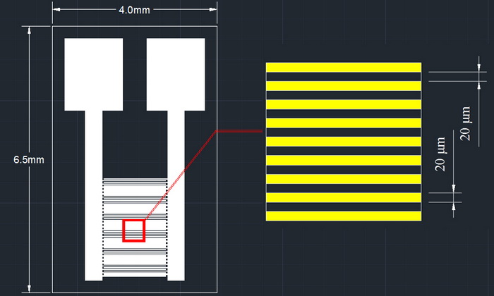 20μm silicon-based interdigital electrode capacitance array MEMS gas biosensor with high photoelectric detection stability