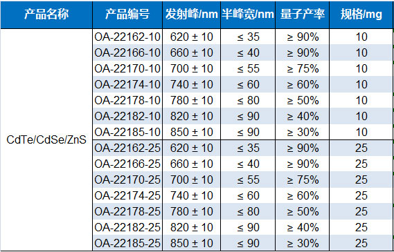 油溶性CdTe/CdSe/ZnS 量子點 高亮紅光 PL 620 nm--850 nm