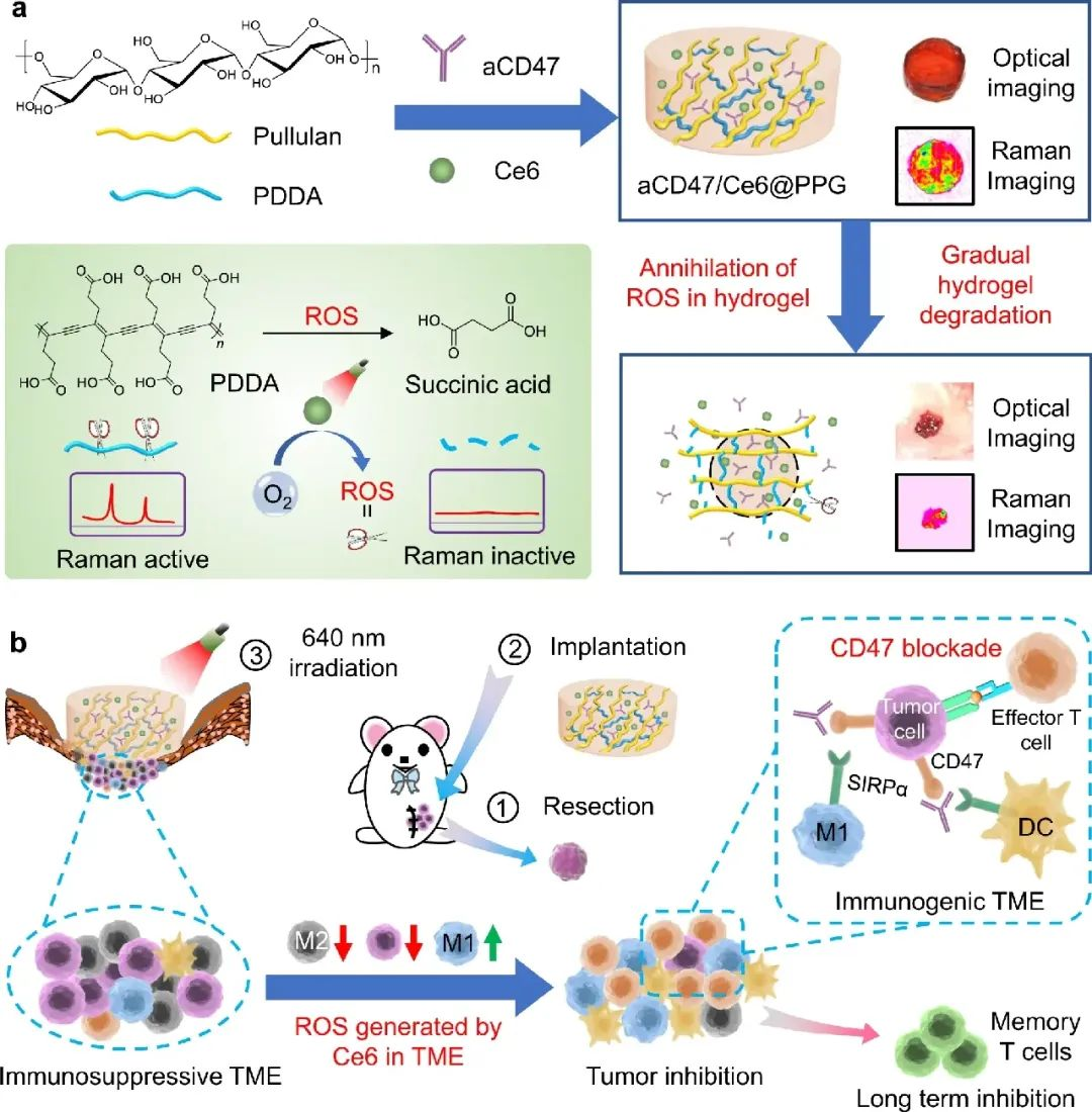 Title:Reactive oxygen species-responsive and Raman-traceable hydrogel combining photodynamic and immune therapy for postsurgical cancer treatment