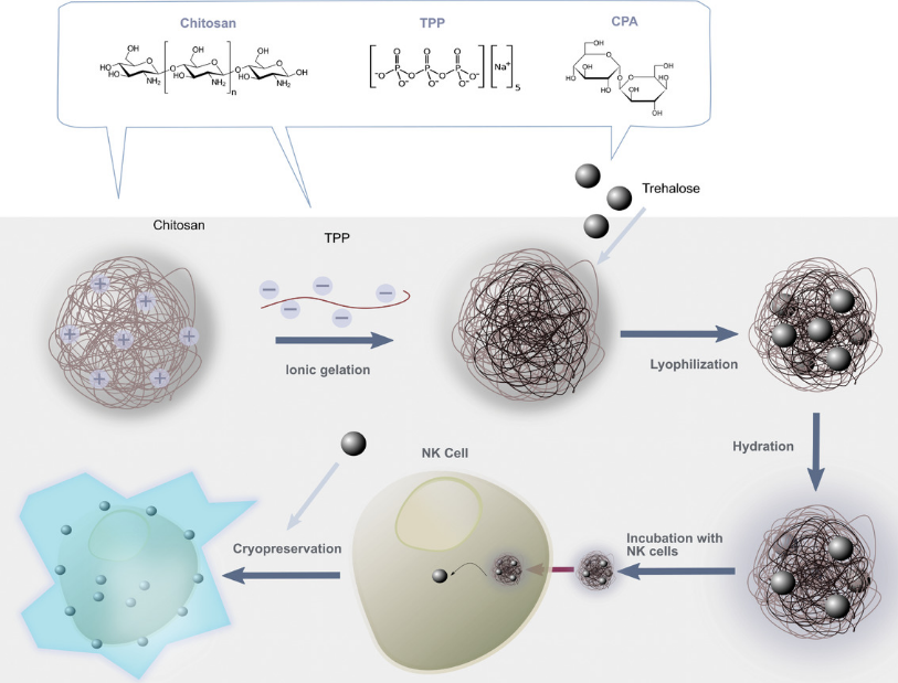 Other instructions: shelf life of half a year in sealed state [Main advantages] CS: TPP Nanoparticles can be used to mediate efficient dimethyl-free sulfoxide cryopreservation of NK cells. NK cells cryopreserved in this manner retain potent cytotoxic, degranulation and cytokine production functions against tumor targets.