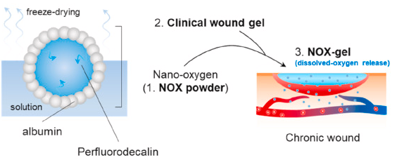 Other instructions: a shelf life of half a year under sealed state [Main Advantages] The technology of transforming traditional gel-based wound dressings by adding lyophilized oxygen-coated nanoparticles, which can locally deliver dissolved oxygen to the wound surface.
