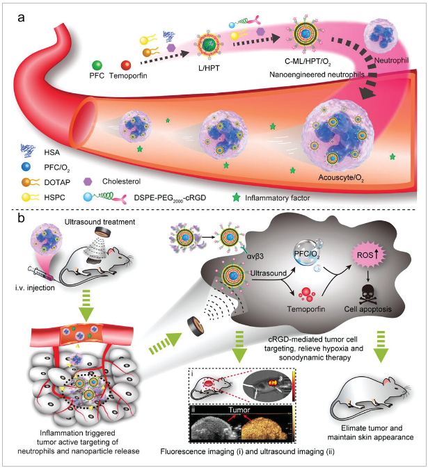 Other instructions: [Main Advantages] A nano-engineering method was used to combine customized liposomes with neutrophils to build oxygen-carrying acoustic sensitizer cells Acouscyte / O2, which was used for visual diagnosis and treatment of cancer