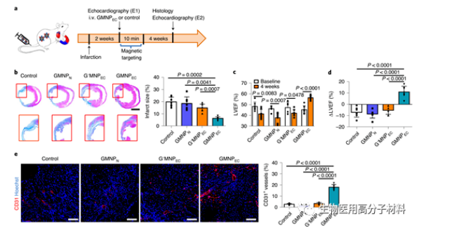圖5. 在心肌梗塞的大鼠模型中,靜脈注射GMNPec后,心臟功能得到改善