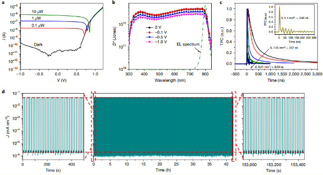 作為光電探測器工作時鈣鈦礦二極管的表征
