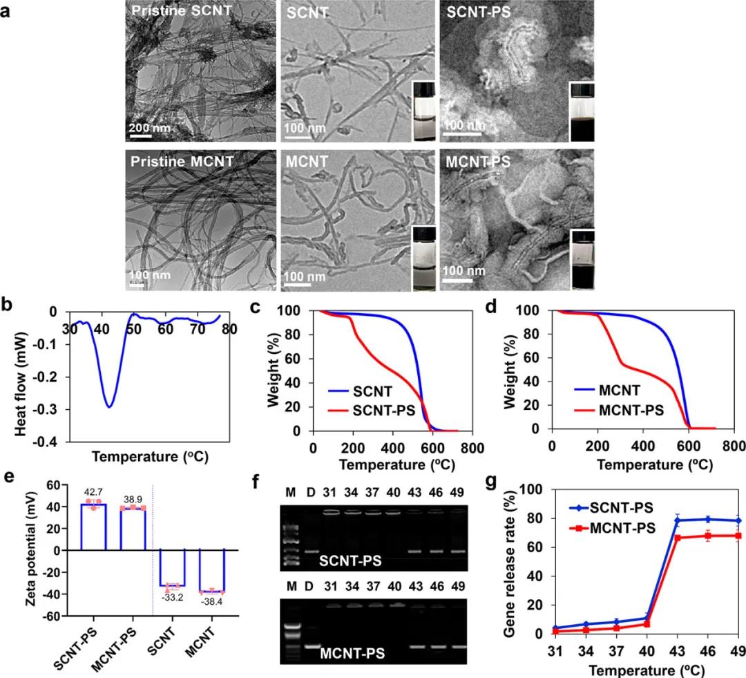 鑒于此,大連民族大學(xué)張樹彪、國家納米科學(xué)中心梁興杰聯(lián)合大連醫(yī)科大學(xué)甄宇紅等人采用肽脂(PL)和蔗糖月桂酸酯(SL)包覆單壁碳納米管(SCNTs)和多壁碳納米管(MCNTs),形成具有優(yōu)異溫敏和光熱性能的雙功能遞送系統(tǒng)(分別表示為SCNT-PS和MCNT-PS)。