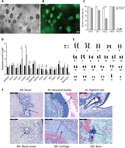 圖3 ASC-hiPSCs 在 3D PGmatrix 水凝膠中長期培養期間保持多能性。