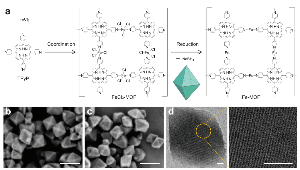 (圖2 Fe-MOF納米晶的合成路線及形貌和結構)