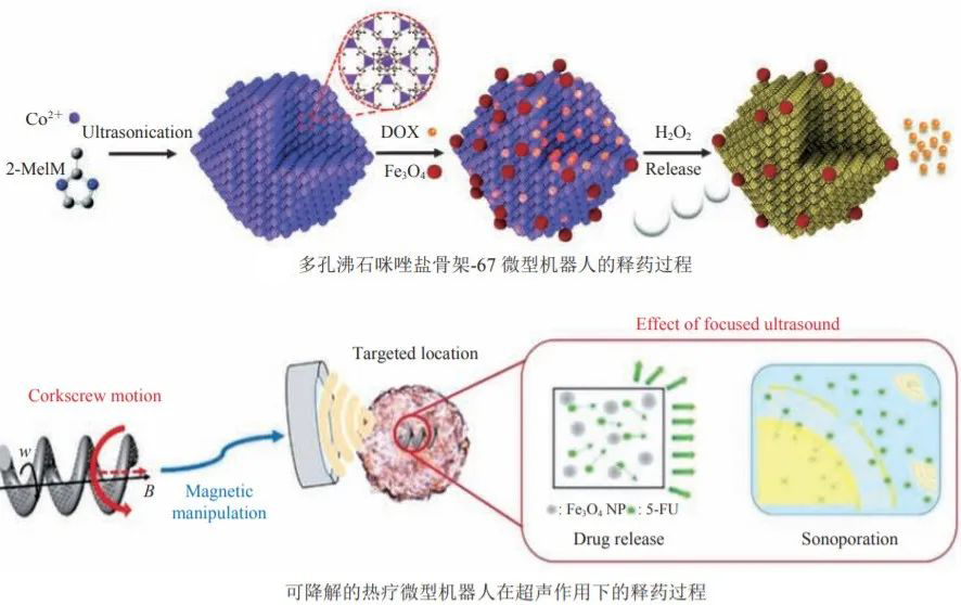 微納米機器人的出現推動了精密醫學的發展。這些小型化機器人通過自組裝、電子束沉積和 3D 打印等方法制造,能夠引發化學反應或在超聲波、光場、磁場等外部場以及微生物(細胞)的作用下運動。它們在生物醫學中的用途廣泛,能夠通過裝載藥物顆粒、生物試劑和活細胞等來實現精準的貨物輸送;也可作為一種小尺寸的手術工具用于外科手術,治療疾病;還能檢測生物體中的金屬離子等物質以做好疾病初期的診斷;此外,還能通過光聲、磁共振等不同方式進行醫學成像。